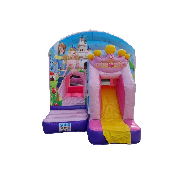 Frontslide prinses midi is een compleet kussen voor de compactere tuin, met een ruim spring gedeelte en leuke glijbaan en dat met de afmeting van 4x3.