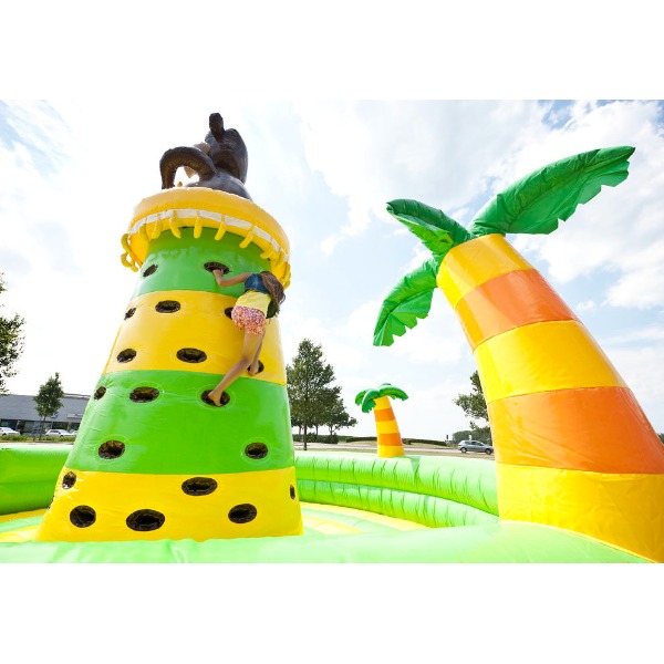Klim zo snel als je kunt in deze opblaasbare boom. Boven in de boom hangen bananen. Wie kan er het snelst alle bananen uit de boom halen?